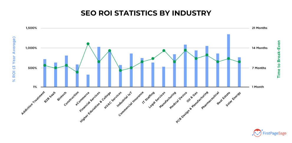 Graph of SEO ROI statistics by industry (image source).