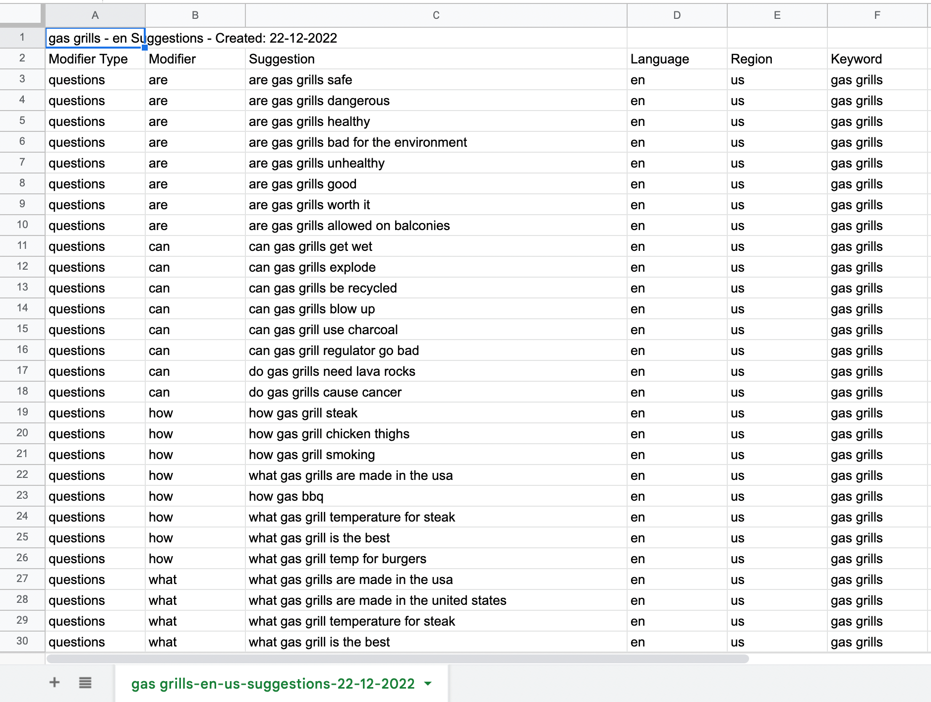 A neat little hack to automate this process is by using SEO Minion. SEO Minion can spit out these topics on a spreadsheet for you automatically.