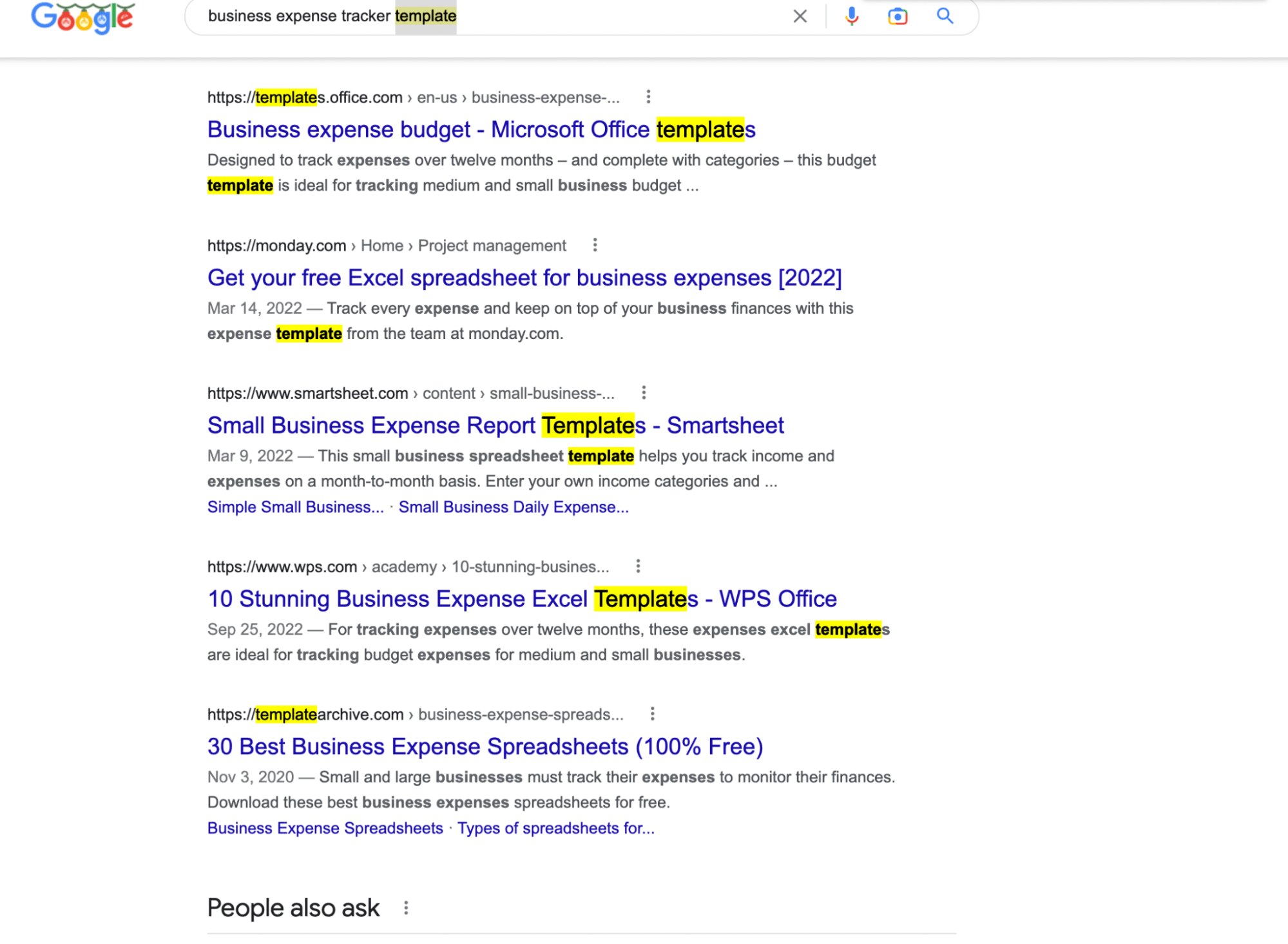 For example, if a person is searching for a “business expense tracker template,” they intend to find a template to track their tax deductions or business expenses. If you write a piece of content about if you need to keep receipts for tax write-offs without a template, it will not rank on the first page of Google.