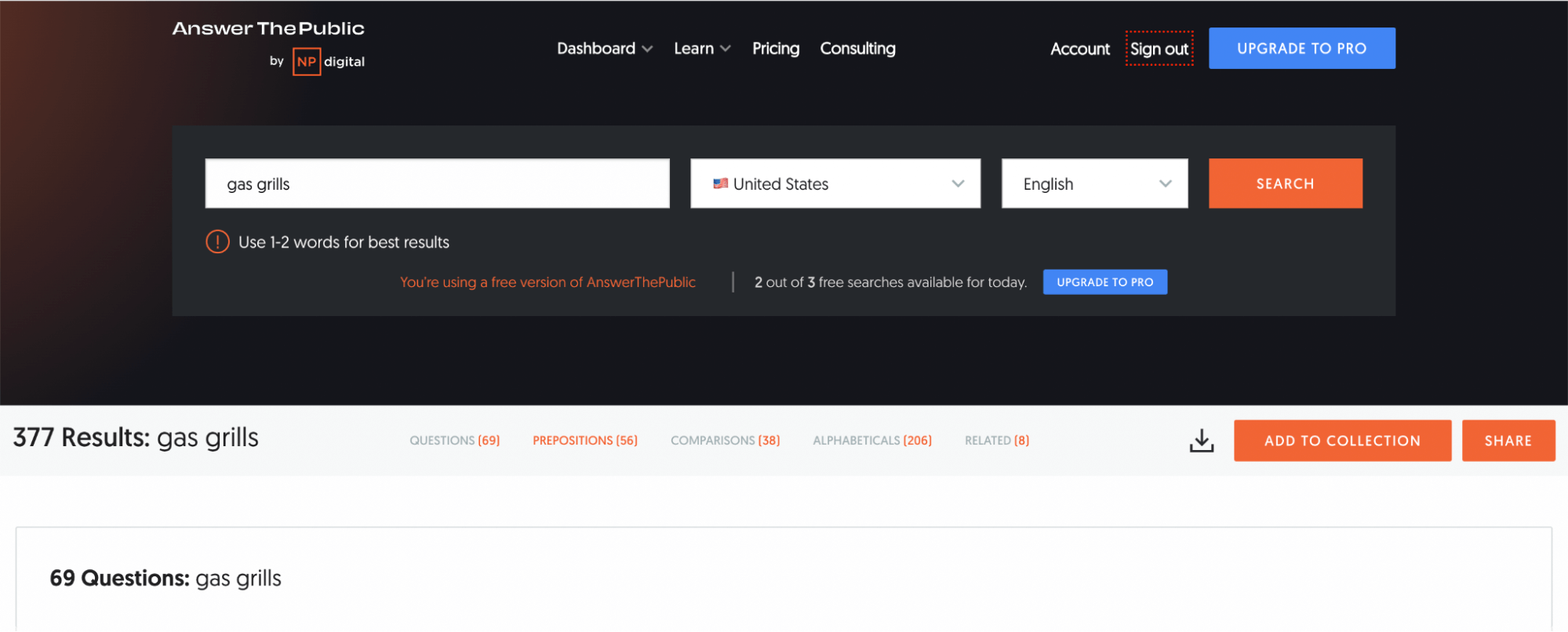 Once you’ve used the tools above to find the different questions surrounding your niche, move on to keyword research.